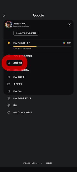 「Google の電話アプリ」リンク