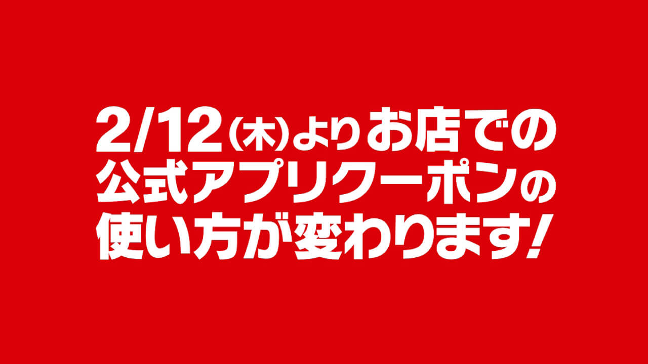 - 2026 年 2 月 12 日(木)からのアプリクーポン使用方法変更に先駆けて、アプリクーポンが QR コード仕様に変更。