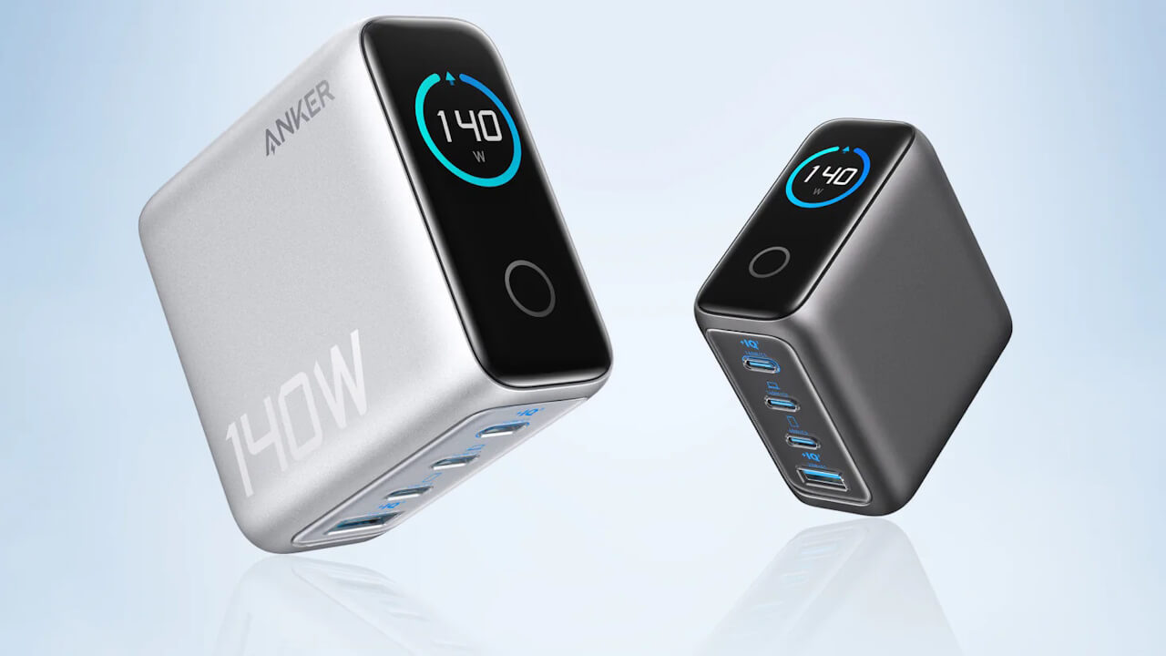 最⼤ 140W 出⼒対応でノート PC などの充電にも対応した 4 ポート(USB Type-C × 3 / USB Type-A × 1)搭載急速充電器「Anker Charger(140W, 4 Ports)with USB-C & USB-C ケーブル」は、出力状況をリアルタイムで確認できるディスプレイを搭載する、複数デバイスの充電が可能なハイスペック急速充電器です。出張や旅のお供にいかがでしょうか。